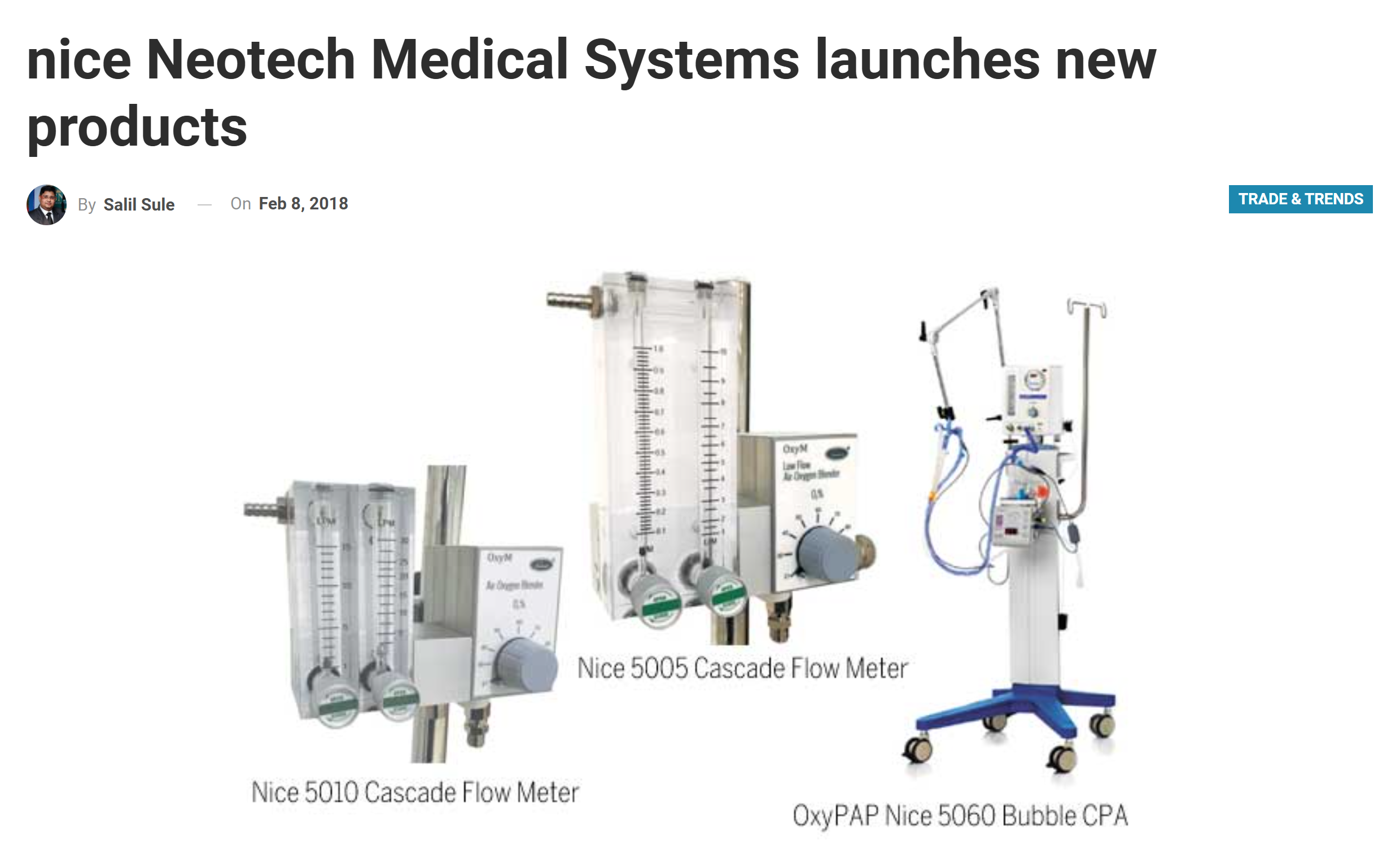 I have been using Warmers, Coldlights, Phototherapy units for the past 15 years. State of art equipments on par with international products at cost effective rate.
