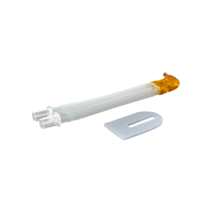 The Bubble CPAP Flow Tube interfaces nasal masks/prongs with breathing circuits using a non-kinkable 10M 7mm ID corrugated tube and 10mm adaptor. Made of flexible, soft, biocompatible material with low flow resistance to minimize dead space. Fixing pillow (76-00-045) cushions sensitive newborn skin against tube compression.